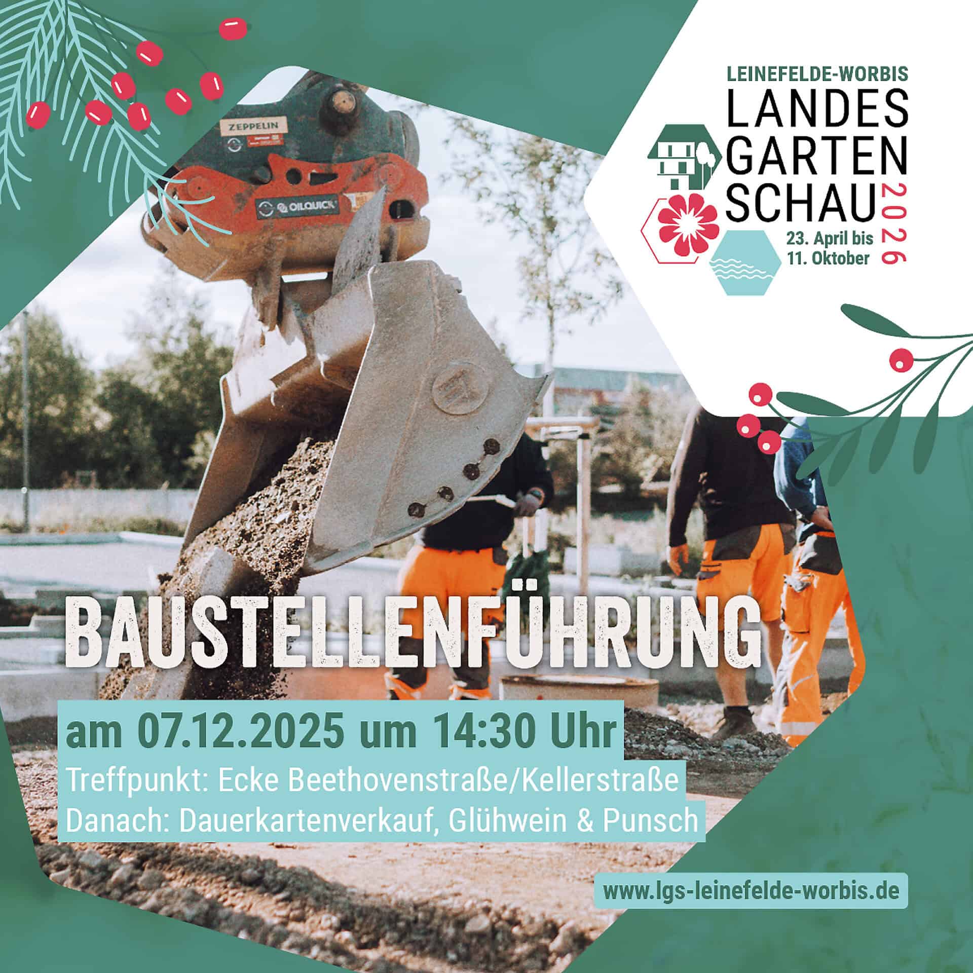 Die Landesgartenschau Leinefelde-Worbis öffnet erneut einen Blick hinter die Kulissen: Am Sonntag, 7. Dezember 2025, lädt das Team der LGS um 14:30 Uhr zu einer öffentlichen Baustellenführung über das zukünftige Gartenschaugelände Augarten ein. Die rund einstündige Tour bietet spannende Einblicke in den aktuellen Baufortschritt sowie in die planerischen Details eines der zentralen Ausstellungsbereiche der Landesgartenschau 2026.