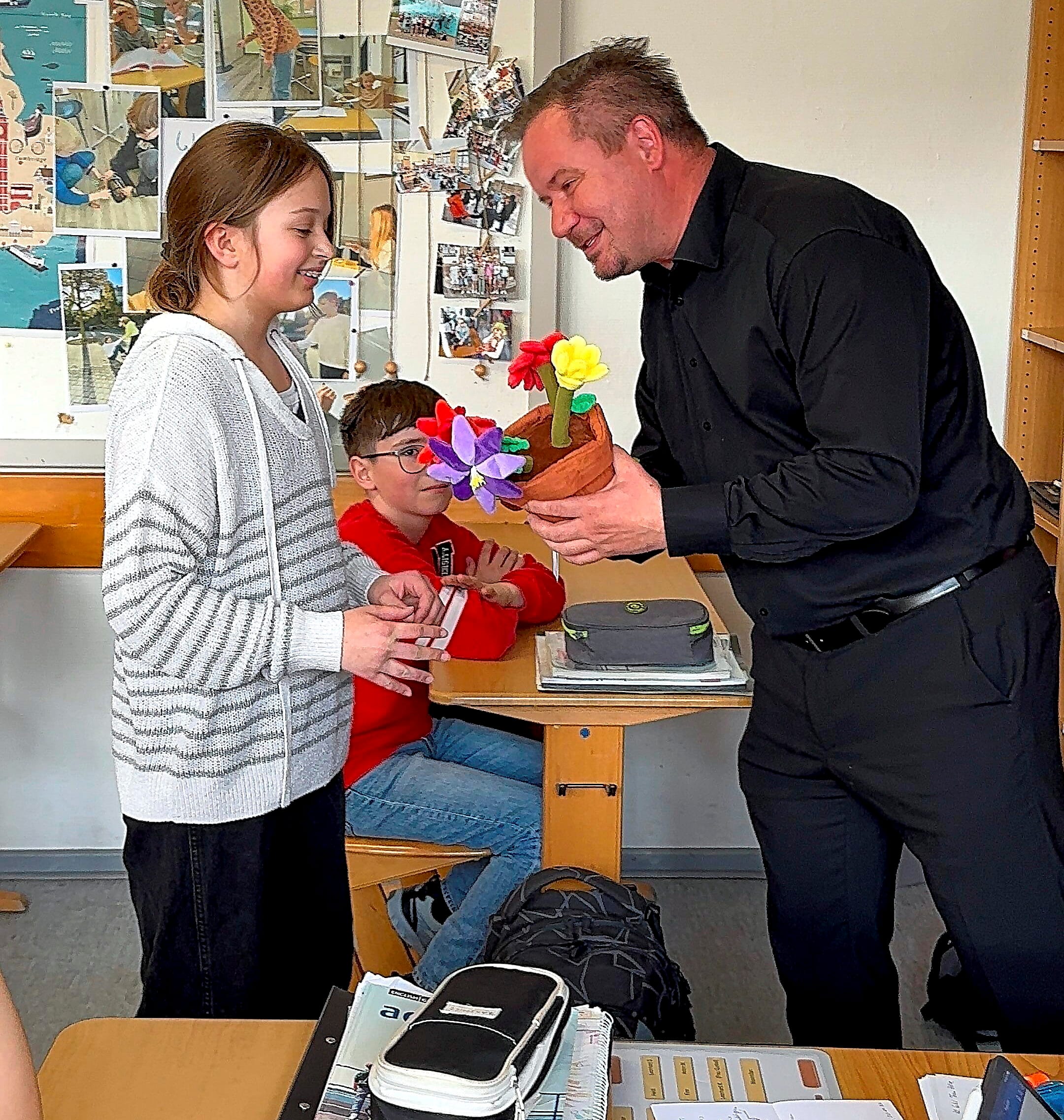 Mit einer besonderen Überraschung ist heute die Schöpferin des Landesgartenschau-Maskottchens geehrt worden: Stadtbürgermeister Christian Zwingmann überreichte der Schülerin Victoria Hartleb aus der Klasse 6b der Heiligenstädter Bergschule St. Elisabeth das erste „echte“ Maskottchen der Landesgartenschau 2026 als Plüschfigur. Die Überraschung war perfekt vorbereitet. Schuldirektor Heinz-Peter Kaes hatte den Stadtbürgermeister und seine Begleiterin Anna Brandt vom LGS-Team angekündigt und damit für gespannte Aufmerksamkeit in der Klasse gesorgt. Als anschließend das liebevoll gefertigte Maskottchen enthüllt wurde, war die Freude groß. Victoria nahm ihr persönliches Exemplar sichtlich bewegt entgegen und erhielt von ihren Mitschülerinnen und Mitschülern viel Applaus.