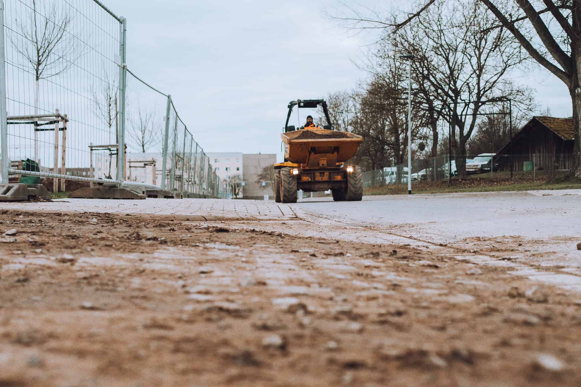 Die Hauptursache liegt in den letzten Erdarbeiten, die derzeit an mehreren Standorten parallel durchgeführt werden. Hinzu kommt das seit Wochen anhaltend ungünstige Wetter, das Erde und Schlamm aufweichen und leicht auf die Verkehrsflächen gelangen lässt. Zwar sind die Reinigungsmaschinen regelmäßig im Einsatz, um die Straßen freizuhalten, jedoch lassen sich witterungsbedingte Verunreinigungen aktuell nicht vollständig verhindern.